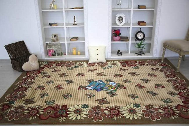 Коротко: «Детский ковер Бабочки 40554-01» (Люберецкие ковры) — ковер для детской, комнаты. материал: полипропилен, стиль: детский, цвет: бежевый, ворс: 8 мм, плотность: 320000 точек/м², основа: джутовая, подходит для детского интерьера, страна производства: Россия.