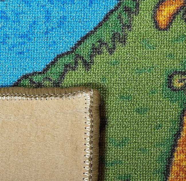 Такой коврик можно постелить в центре детской комнаты или оформить с его помощью целую игровую зону. Переживать за комфорт и безопасность ребенка не стоит. В основании паласа имеется специальная подложка из войлока, которая помогает: