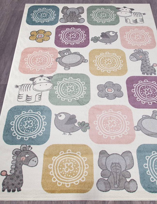 Добавьте буйство ярких позитивных красок в свою жизнь и в жизнь вашего малыша! Новая коллекция детских ковров РИО от одного из мировых лидеров производителя MERINOS дополнит интерьер вашей комнаты окончательным броским штрихом, с помощью которого дизайн помещения обретет законченность и стиль. Нить фризе отличает легкая скрученность (сжатость), что придает коврам дополнительный шарм. Ковры РИО мягкие и очень приятные на ощупь, что позволяет играть на них малышам любого возраста. Дополнительно необходимо отметить, что полипропилен является гиппоаллергенным материаломКоротко: «Ковер SOFIT 2920 LIGHT CREAM» (SOFIT, MERINOS) — ковер для детского сада, детской. материал: полипропилен, стиль: детский, цвет: кремовый с цветным рисунком, ворс: 10 мм, плотность: 304000 точек/м², основа: джут, подходит для детского интерьера, страна производства: Россия.