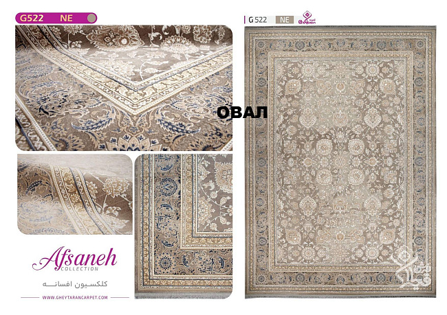 Коротко: «Ковер AFSANE 1200 ACRYLIC G522 NE 000 Овал» (AFSANE 1200 ACRYLIC) — ковер. страна производства: Иран.