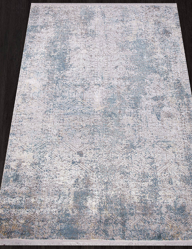 Коротко: «Ковер AJMAL LP 257 CREAM / TURQUOISE» (AJMAL, SIRMA, Турция) — ковер для дома, гостиной. материал: полиэстер, стиль: в современном стиле, цвет: кремовый, синий, ворс: 10 мм, плотность: 462000 точек/м², основа: джутовая, подходит для современного интерьера, страна производства: Турция.