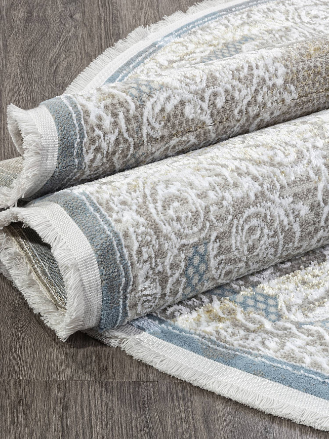 Коротко: «Ковер AJMAL LP 289 CREAM / BLUE Овал» (AJMAL, SIRMA, Турция) — ковер для дома, гостиной. материал: полиэстер, стиль: в классическом стиле, цвет: серый, синий, кремовый, ворс: 10 мм, плотность: 462000 точек/м², основа: джутовая, ориентирован на классическую подачу, страна производства: Турция.