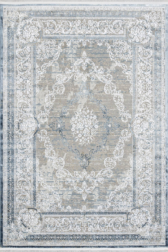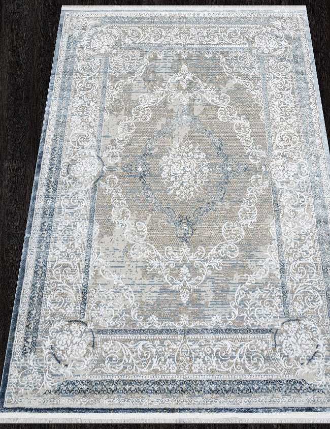 Коротко: «Ковер AJMAL LP 292 CREAM / BLUE» (AJMAL, SIRMA, Турция) — ковер для дома, гостиной. материал: полиэстер, стиль: в классическом стиле, цвет: серый, синий, кремовый, ворс: 10 мм, плотность: 462000 точек/м², основа: джутовая, ориентирован на классическую подачу, страна производства: Турция.