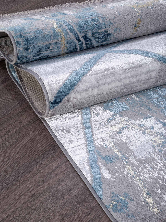 Коротко: «Ковер AJMAL LP 315 GREY / BLUE» (AJMAL, SIRMA, Турция) — ковер для дома, гостиной. материал: полиэстер, стиль: в современном стиле, цвет: серый, синий, ворс: 10 мм, плотность: 462000 точек/м², основа: джутовая, подходит для современного интерьера, страна производства: Турция.