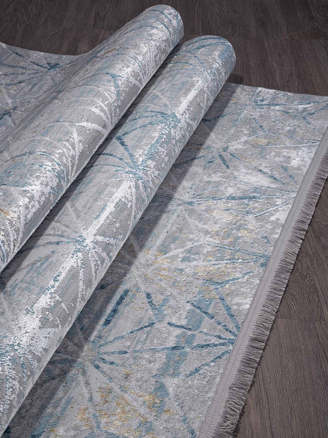 Коротко: «Ковер AJMAL LP 320 GREY / BLUE» (AJMAL, SIRMA, Турция) — ковер для дома, гостиной. материал: полиэстер, стиль: в современном стиле, цвет: серый, синий, ворс: 10 мм, плотность: 462000 точек/м², основа: джутовая, подходит для современного интерьера, страна производства: Турция.
