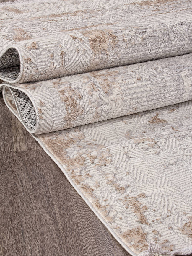 Коротко: «Ковер ALANYA 22400A WHITE / GREY SHR» (ALANYA, DURKAR, Турция) — ковер для дома, гостиной. материал: полиэстер 50% + Полипропилен 50%, стиль: в современном стиле, цвет: кремовый, коричневый, ворс: 9 мм, плотность: 280000 точек/м², основа: джут, подходит для современного интерьера, страна производства: Турция.