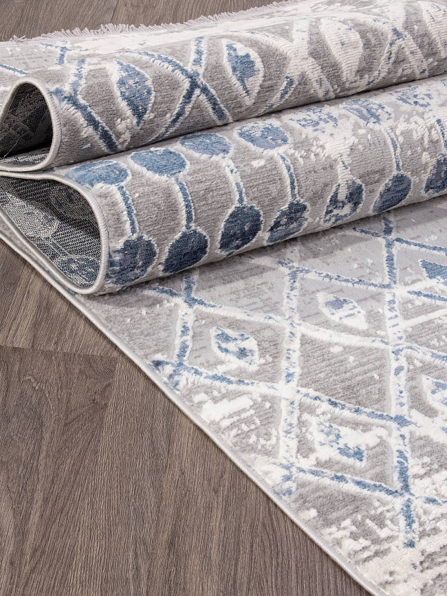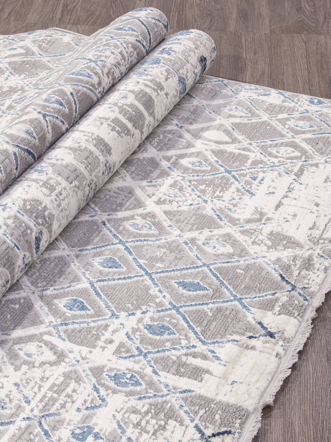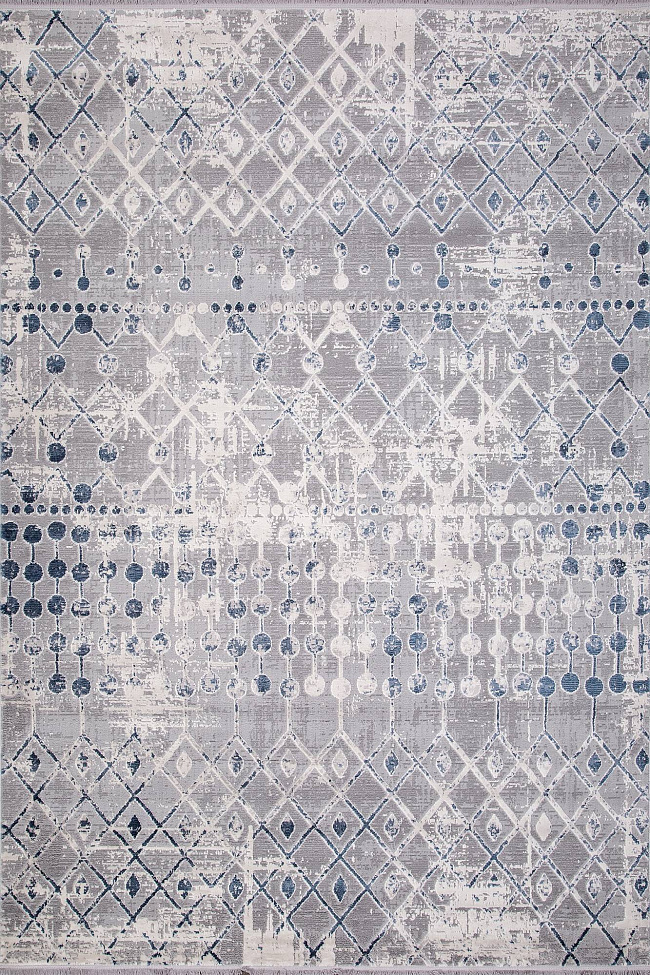Коротко: «Ковер ALANYA 22422A GREY / CREAM» (ALANYA, DURKAR, Турция) — ковер для дома, гостиной. материал: полиэстер 50% + Полипропилен 50%, стиль: в современном стиле, цвет: серый, синий, ворс: 9 мм, плотность: 280000 точек/м², основа: джут, подходит для современного интерьера, страна производства: Турция.