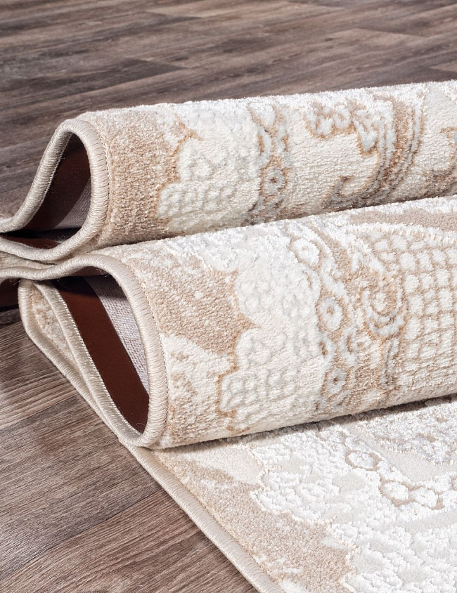 Коротко: «Ковер ALFANI 0T211RG VIZON / VIZON» (ALFANI, BEHRAM, Турция) — ковер для дома, гостиной. материал: полиэстер, стиль: классический, Восточный, цвет: бежевый, светло-коричневый, слоновая кость, ворс: 6 мм, плотность: 528000 точек/м², основа: джутовая, ориентирован на классическую подачу, страна производства: Турция.