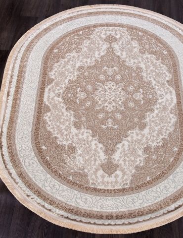 Коротко: «Ковер ALFANI 0T249RG VIZON / VIZON Овал» (ALFANI, BEHRAM, Турция) — ковер для дома, гостиной. материал: полиэстер, стиль: в классическом стиле, цвет: бежевый, коричневый, кремосый, ворс: 6 мм, плотность: 528000 точек/м², основа: джутовая, ориентирован на классическую подачу, страна производства: Турция.