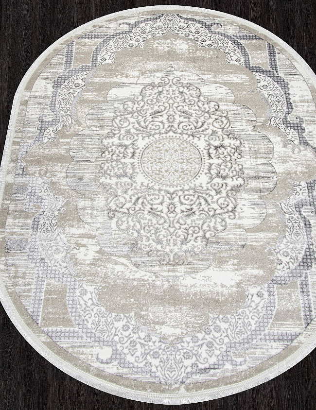 Коротко: «Ковер ALFANI-A Q018A GREY FDY / CREAM SHRINK Овал» (ALFANI ARDA, ARDA, Турция) — ковер для дома, гостиной. материал: полиэстер, стиль: в классическом стиле, цвет: серый, кремовый, ворс: 8 мм, плотность: 400000 точек/м², основа: хлопок, ориентирован на классическую подачу, страна производства: Турция.