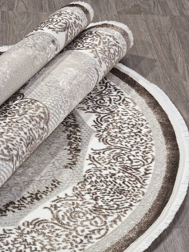 Коротко: «Ковер ALFANI Q009A BROWN FDY/CREAM SHRINK Овал» (ALFANI ARDA, ARDA, Турция) — ковер для дома, гостиной. материал: полиэстер, стиль: в классическом стиле, цвет: серый, кремовый, коричневый, ворс: 8 мм, плотность: 400000 точек/м², основа: хлопок, ориентирован на классическую подачу, страна производства: Турция.