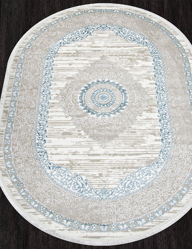 Коротко: «Ковер ALFANI Q012A BLUE FDY / CREAM SHRINK Овал» (ALFANI ARDA, ARDA, Турция) — ковер для дома, гостиной. материал: полиэстер, стиль: в классическом стиле, цвет: серый, синий, ворс: 8 мм, плотность: 400000 точек/м², основа: хлопок, ориентирован на классическую подачу, страна производства: Турция.