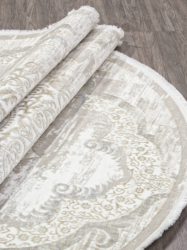 Коротко: «Ковер ALFANI Q018A BEIGE FDY / CREAM SHRINK Овал» (ALFANI ARDA, ARDA, Турция) — ковер для дома, гостиной. материал: полиэстер, стиль: в классическом стиле, цвет: кремовый, серый, ворс: 8 мм, плотность: 400000 точек/м², основа: хлопок, ориентирован на классическую подачу, страна производства: Турция.