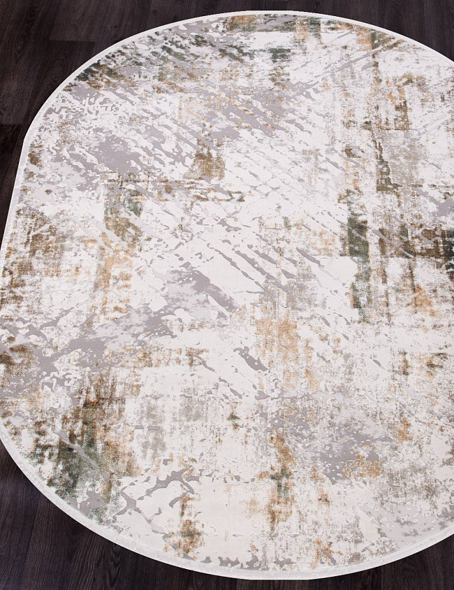 Коротко: «Ковер ALLURES 12123 CREAM / GREEN Овал» (ALLURES, IPEK MEKIK, Турция) — ковер для дома, гостиной. материал: вискоза 65% + Акрил 35%, стиль: в современном стиле, цвет: кремовый, зеленый, ворс: 9 мм, плотность: 1250000 точек/м², основа: хлопок, подходит для современного интерьера, страна производства: Турция.
