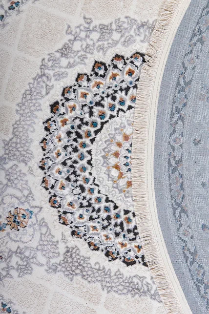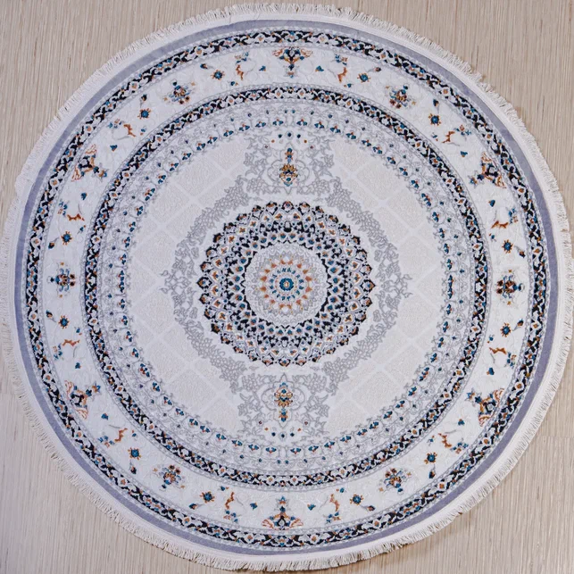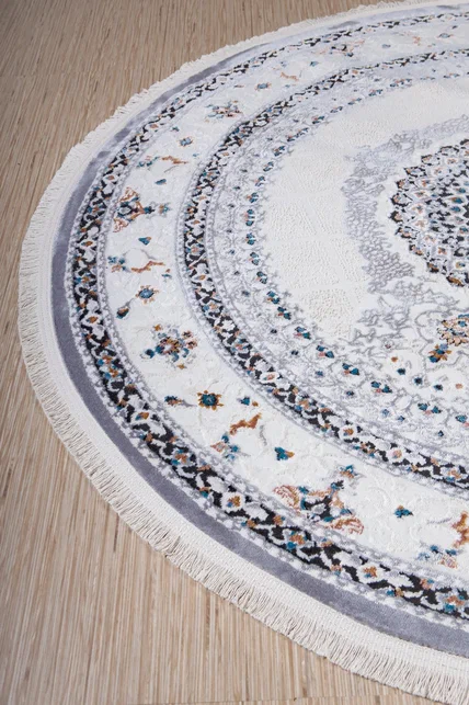 Коротко: «Ковер Amira 4836A L. Grey-L. Grey Круг» (Amira Round, Elisa Rugs, Турция) — ковер для дома, гостиной. материал: полиэстер, стиль: в классическом стиле, цвет: кремовый, серый, ворс: 9 мм, плотность: 528000 точек/м², основа: 100% Хлопок, ориентирован на классическую подачу, страна производства: Турция.