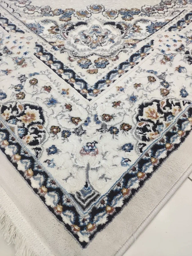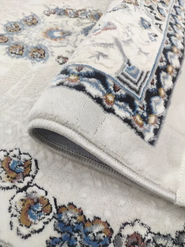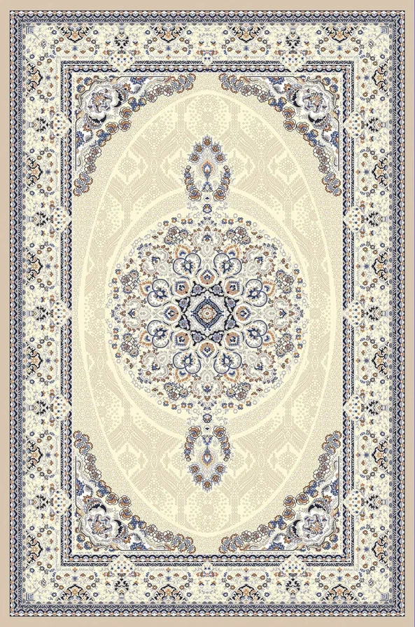 Коротко: «Ковер Amira 4923A Beige-Beige» (Amira, Elisa Rugs, Турция) — ковер для дома, гостиной. материал: полиэстер, стиль: в классическом стиле, цвет: кремовый, синий, бежевый, ворс: 9 мм, плотность: 528000 точек/м², основа: 100% Хлопок, ориентирован на классическую подачу, страна производства: Турция.