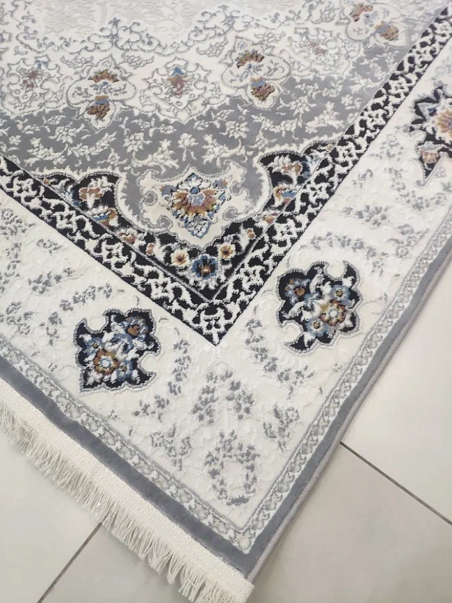 Коротко: «Ковер Amira 4924A L. Grey-L. Grey» (Amira, Elisa Rugs, Турция) — ковер для дома, гостиной. материал: полиэстер, стиль: в классическом стиле, цвет: кремовый, бежевый, серый, ворс: 9 мм, плотность: 528000 точек/м², основа: 100% Хлопок, ориентирован на классическую подачу, страна производства: Турция.