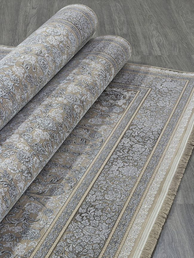 Коротко: «Ковер ARAMIS 123148 000» (ARAMIS, IRANOS, Иран) — ковер для дома, гостиной. материал: вискоза + Акрил, стиль: в классическом стиле, цвет: серый, бежевый, кремовый, ворс: 12 мм, плотность: 3600000 точек/м², основа: джут, ориентирован на классическую подачу, страна производства: Иран.