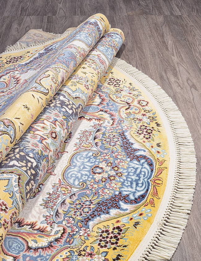 Коротко: «Ковер ARAVIA 6807 YELLOW Овал» (ARAVIA, MERINOS) — ковер для дома, гостиной. материал: полипропилен, стиль: в классическом стиле, цвет: желтый, синий, бежевый, ворс: 9 мм, плотность: 921600 точек/м², основа: джут, ориентирован на классическую подачу, страна производства: Россия.