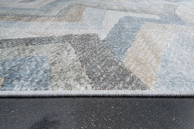 Коротко: «Ковер Mayumi 85013 5252» (MAYUMI UF, Ragolle) — ковер для дома, гостиной. материал: вискоза, стиль: современный, Лофт, цвет: серый, бежевый, синий, ворс: 6.25 мм, плотность: 800000 точек/м², основа: джутовая, подходит для современного интерьера, страна производства: Бельгия.