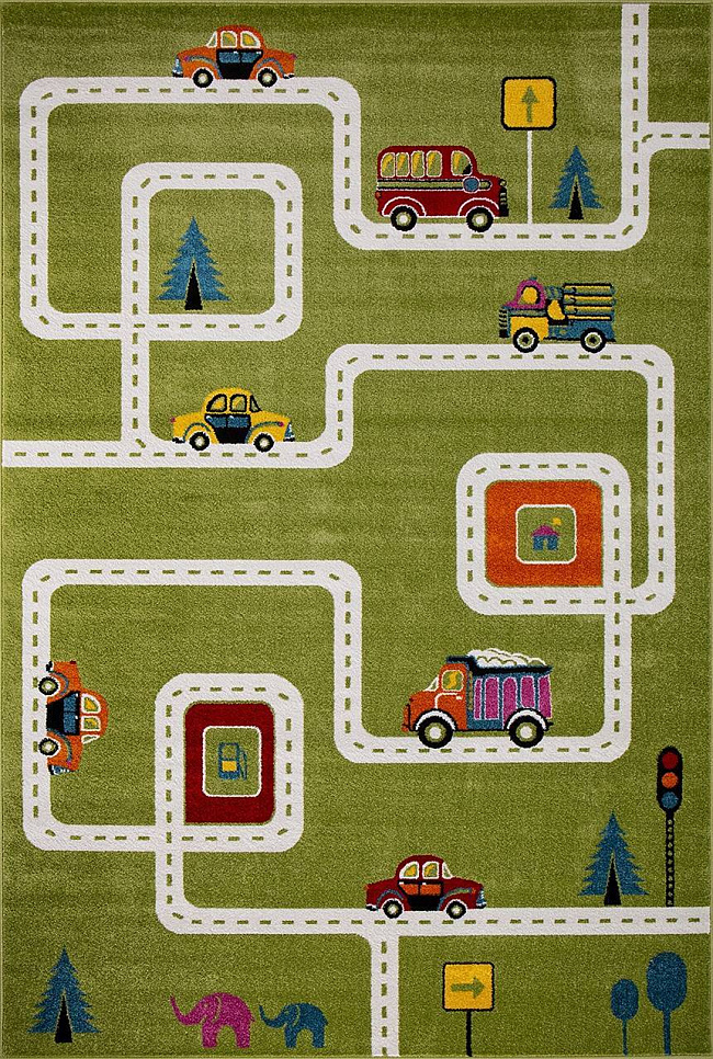 Коротко: «Ковер с дорогами ART KIDS LM03 GREEN» (ART KIDS, MERINOS) — ковер для детской, дома. материал: полипропилен, стиль: детский, цвет: зеленый, ворс: 10 мм, плотность: 304000 точек/м², основа: джут, подходит для детского интерьера, страна производства: Россия.