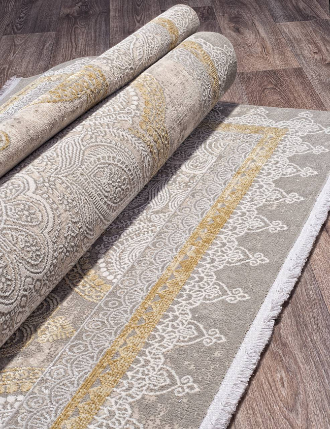 Коротко: «Ковер ATLAS 9306 BEIGE / BEIGE» (ATLAS DORUK, DORUK, Турция) — ковер для дома, гостиной. материал: вискоза 65% + Акрил 30% + Полиэстер 5%, стиль: в классическом стиле, цвет: серый, бежевый, ворс: 8 мм, плотность: 1152000 точек/м², основа: хлопок, ориентирован на классическую подачу, страна производства: Турция.