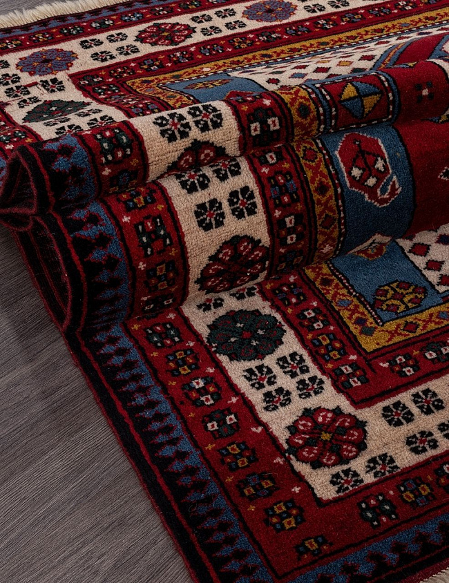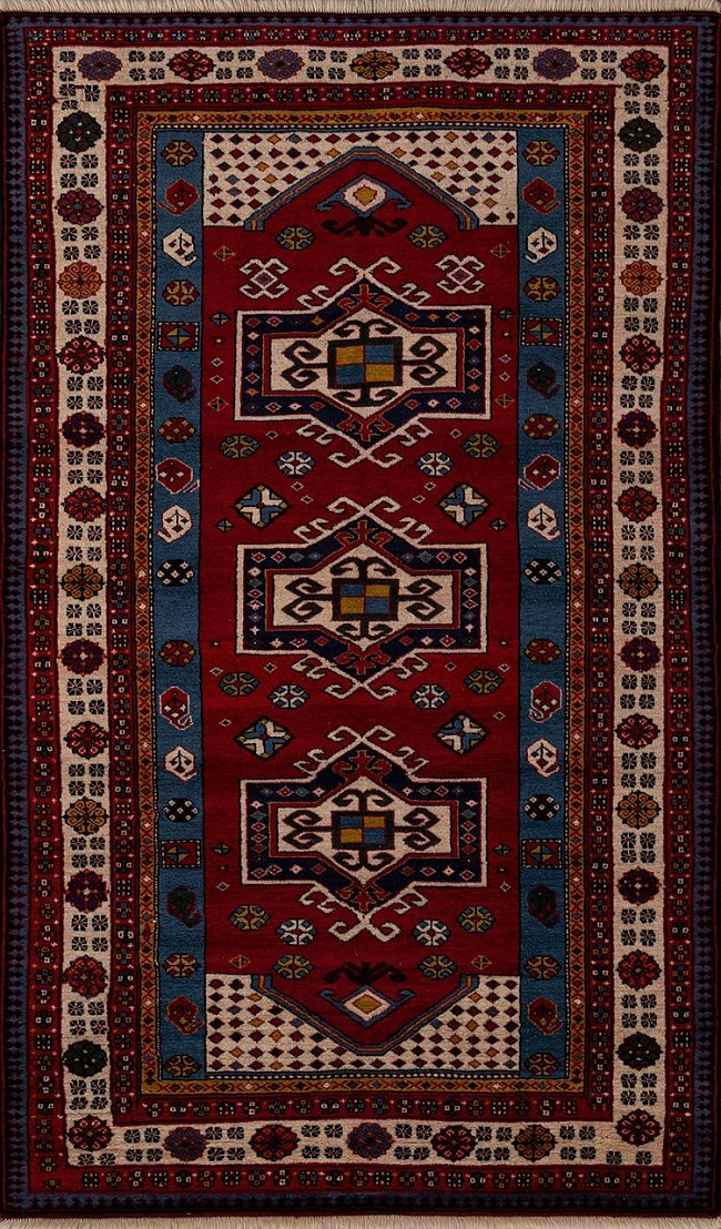 Коротко: «Ковер Azerkhalcha GAZAKH 588» (Azerkhalcha, Azerkhalcha, Азербайджан) — ковер для дома, гостиной. материал: шерсть, стиль: классический, Этно, цвет: красный, синий, кремовый, ворс: 7.9 мм, плотность: 35 точек/м², основа: 100% Хлопок, ориентирован на классическую подачу, страна производства: Азербайджан.