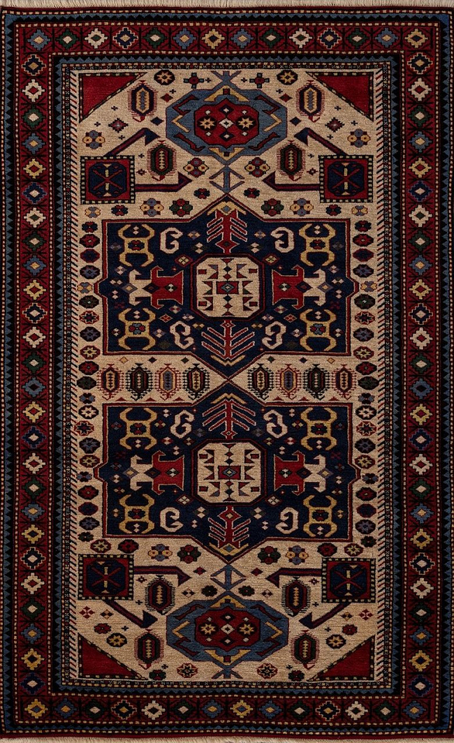 Коротко: «Ковер Azerkhalcha QARABAG 1083» (Azerkhalcha, Azerkhalcha, Азербайджан) — ковер для дома, гостиной. материал: шерсть, стиль: классический, Этно, цвет: бежевый, красный, синий, ворс: 7.9 мм, плотность: 35 точек/м², основа: 100% Хлопок, ориентирован на классическую подачу, страна производства: Азербайджан.