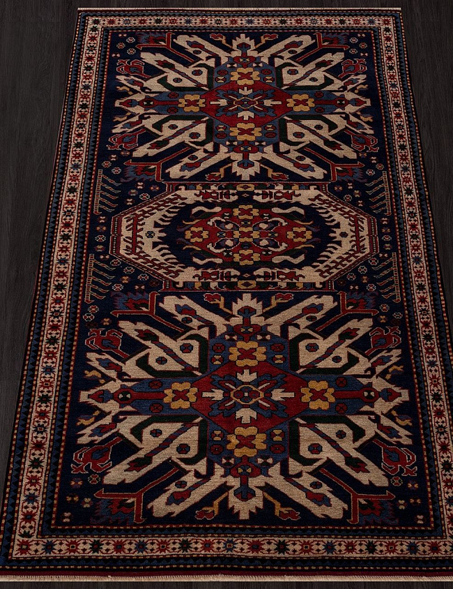 Коротко: «Ковер Azerkhalcha QARABAG 2714» (Azerkhalcha, Azerkhalcha, Азербайджан) — ковер для дома, гостиной. материал: шерсть, стиль: классический, Этно, цвет: красный, синий, кремовый, ворс: 7.9 мм, плотность: 35 точек/м², основа: 100% Хлопок, ориентирован на классическую подачу, страна производства: Азербайджан.