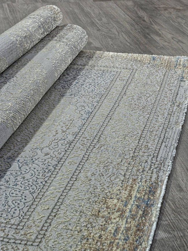 Коротко: «Ковер AZIZA O0788 930» (AZIZA, MERINOS, Турция) — ковер для дома, гостиной. материал: полиэстер, стиль: в классическом стиле, цвет: серый, ворс: 8 мм, плотность: 556800 точек/м², основа: джут, ориентирован на классическую подачу, страна производства: Турция.
