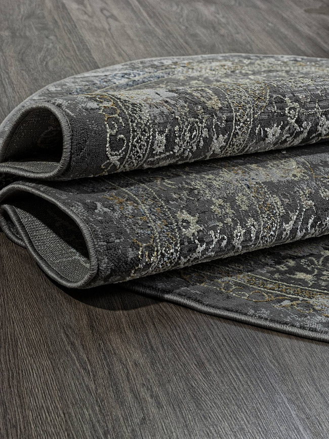 Коротко: «Ковер AZIZA O1174 110 Овал» (AZIZA, MERINOS, Турция) — ковер для дома, гостиной. материал: полиэстер, стиль: в классическом стиле, цвет: серый, кремовый, ворс: 8 мм, плотность: 556800 точек/м², основа: джут, ориентирован на классическую подачу, страна производства: Турция.