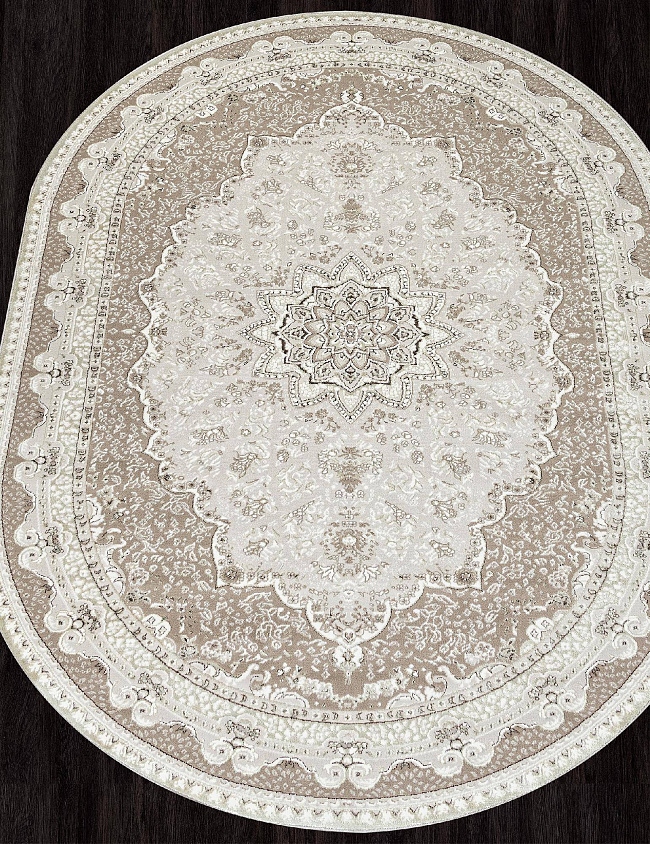 Коротко: «Ковер AZIZA O1463 060 Овал» (AZIZA, MERINOS, Турция) — ковер для дома, гостиной. материал: полиэстер, стиль: в классическом стиле, цвет: кремовый, бежевый, ворс: 8 мм, плотность: 556800 точек/м², основа: джут, ориентирован на классическую подачу, страна производства: Турция.