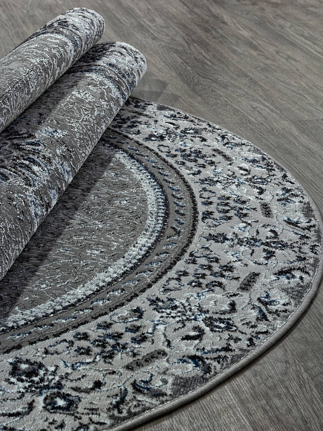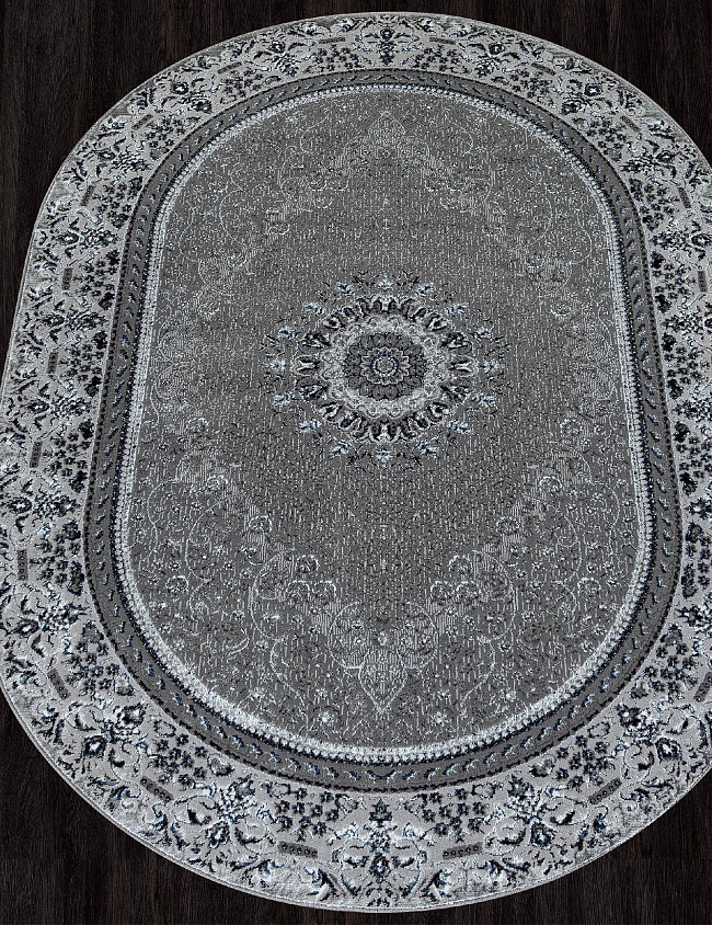 Коротко: «Ковер AZIZA O1464 930 Овал» (AZIZA, MERINOS, Турция) — ковер для дома, гостиной. материал: полиэстер, стиль: в классическом стиле, цвет: серый, ворс: 8 мм, плотность: 556800 точек/м², основа: джут, ориентирован на классическую подачу, страна производства: Турция.