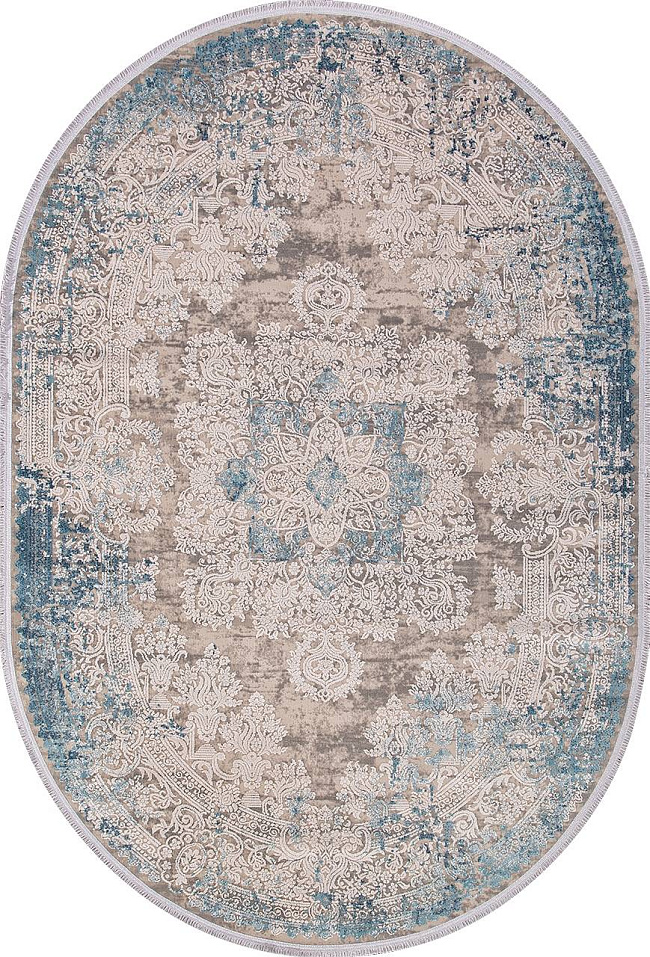 Коротко: «Ковер BIBLOS 9304 BEIGE / BLUE Овал» (BIBLOS, DORUK, Турция) — ковер для дома, гостиной. материал: вискоза 65% + Акрил 30% + Полиэстер 5%, стиль: в классическом стиле, цвет: бежевый, синий, ворс: 8 мм, плотность: 1152000 точек/м², основа: хлопок, ориентирован на классическую подачу, страна производства: Турция.