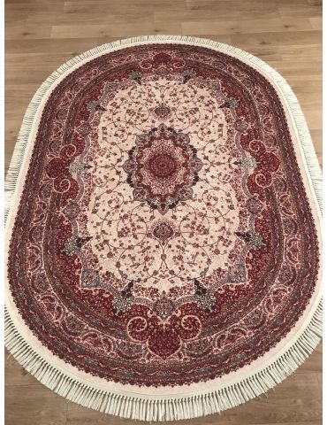Коротко: «Ковер BRILLANT RJE11152 801 Овал» (BRILLANT, BYD, Турция) — ковер для дома, гостиной. материал: полиэстер, стиль: в классическом стиле, цвет: кремовый, красный, коричневый, тип ворса: Короткий, плотность: 1000000 точек/м², основа: латекс (вспененная), ориентирован на классическую подачу, страна производства: Турция.