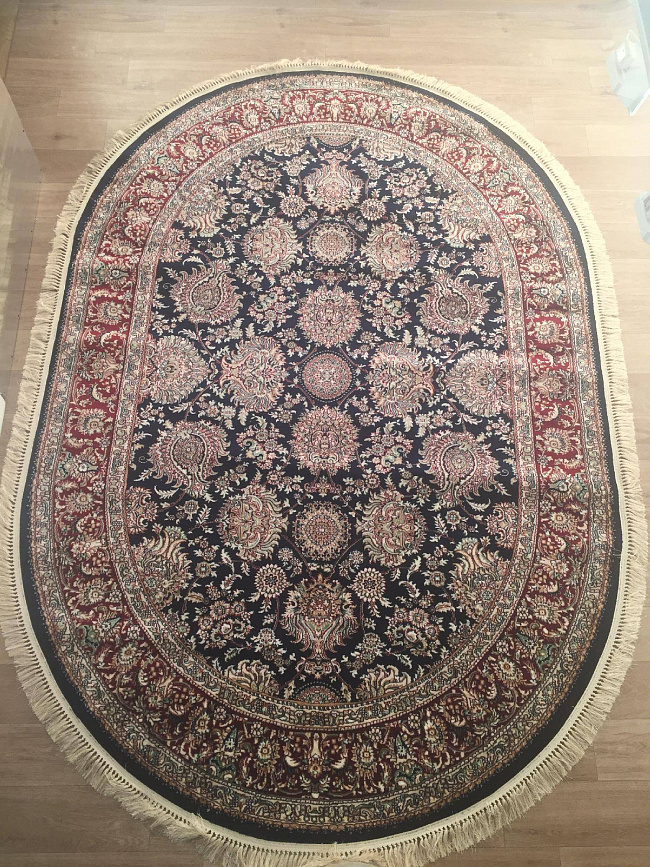 Коротко: «Ковер BROOKLYN 08613T BLUE / BLUE Овал» (BROOKLYN, KARMEN HALI, Турция) — ковер для дома, гостиной. материал: полиэстер, стиль: в классическом стиле, цвет: красный, синий, коричневый, ворс: 9 мм, плотность: 672000 точек/м², основа: джут, ориентирован на классическую подачу, страна производства: Турция.