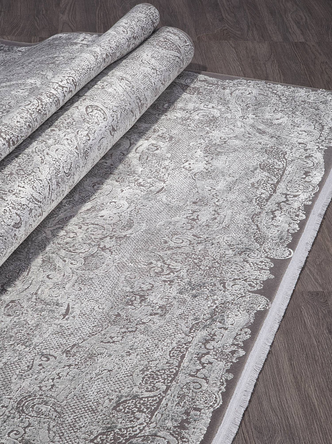 Коротко: «Ковер CABINET A169AF D. GREY / GREY» (CABINET, DURKAR, Турция) — ковер для дома, гостиной. материал: вискоза 70% + Акрил 30%, цвет: серый, ворс: 7 мм, плотность: 2000000 точек/м², основа: хлопок, ориентирован на классическую подачу, страна производства: Турция.
