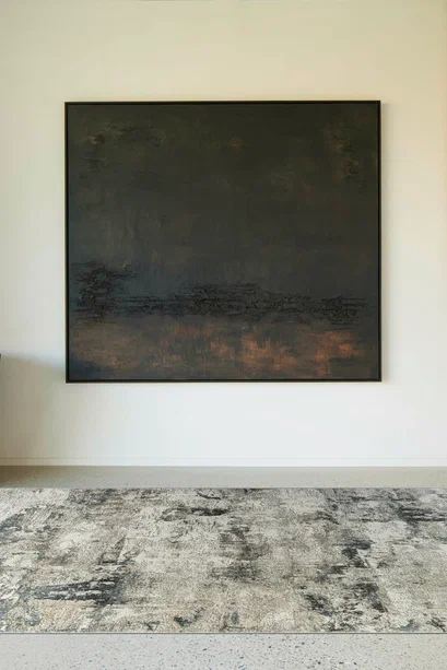 Этот ковер хорошо работает в современном интерьере, где важны чистая визуальная логика, фактура и умеренный декоративный акцент без перегруженности деталями.