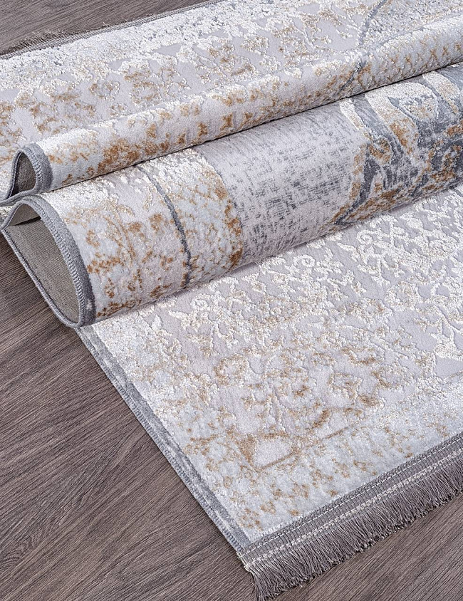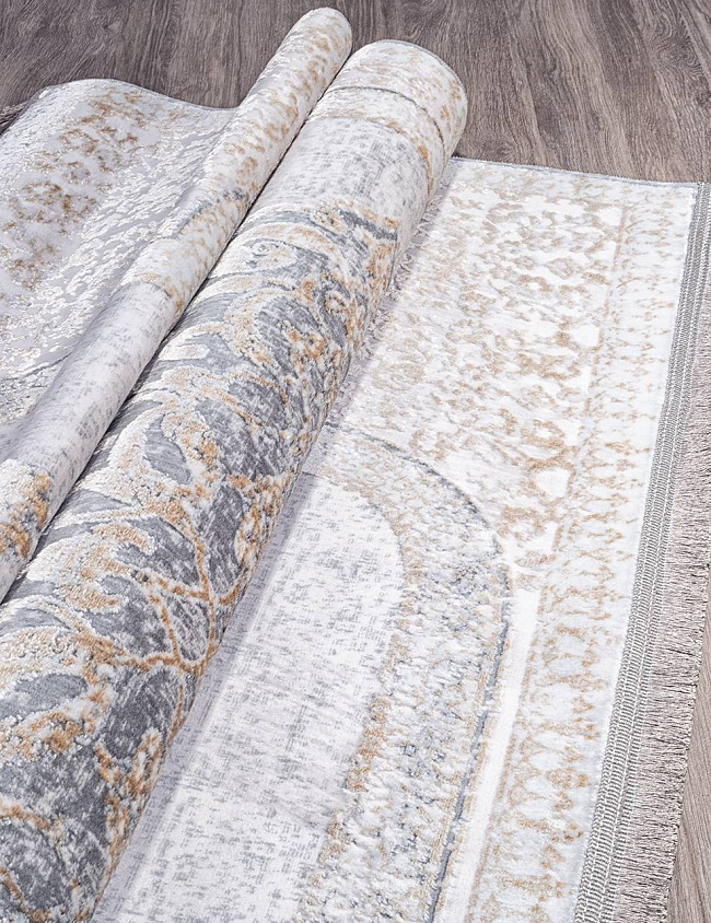 Коротко: «Ковер CAPRICE 8541 в дизайне» (CAPRICE, Turciaos, Турция) — ковер для дома, гостиной. материал: полиэстер 40% + Акрил 40% + Хлопок 20%, стиль: в классическом стиле, цвет: кремовый, серый, ворс: 6 мм, плотность: 1200000 точек/м², основа: хлопок, ориентирован на классическую подачу, страна производства: Турция.