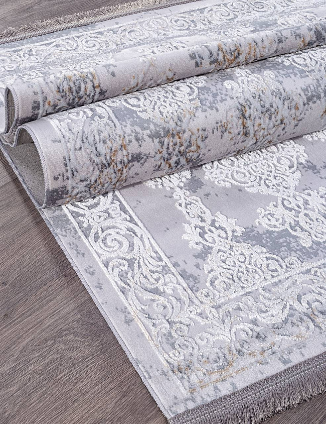 Коротко: «Ковер CAPRICE 8543 в дизайне» (CAPRICE, Turciaos, Турция) — ковер для дома, гостиной. материал: полиэстер 40% + Акрил 40% + Хлопок 20%, стиль: в современном стиле, цвет: серый, бежевый, кремовый, ворс: 6 мм, плотность: 1200000 точек/м², основа: хлопок, ориентирован на классическую подачу, страна производства: Турция.