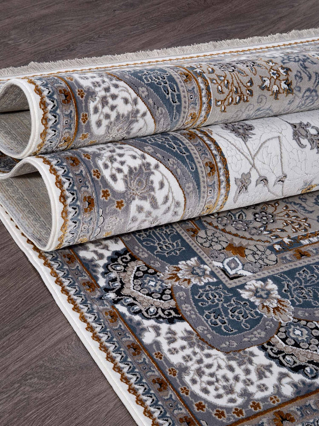 Коротко: «Ковер CASABLANKA 9733A WHITE / WHITE» (CASABLANKA, Ercaplan) — ковер для дома, гостиной. материал: полиэстер, стиль: в классическом стиле, цвет: голубой, белый, серый, ворс: 7 мм, плотность: 1500000 точек/м², основа: хлопок, ориентирован на классическую подачу, страна производства: Турция.