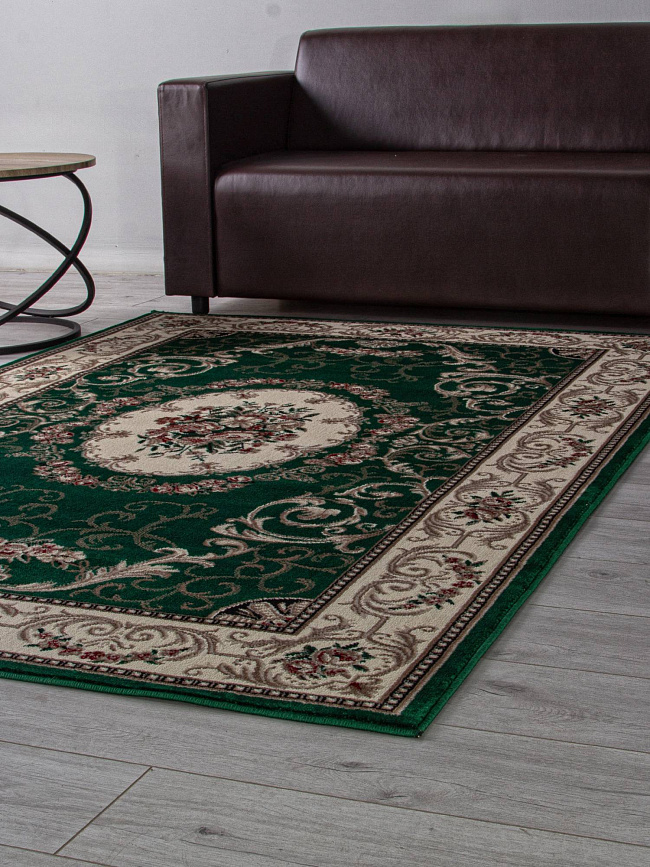 Коротко: «Ковер COLIZEY D066 GREEN» (COLIZEY, MERINOS) — ковер для дома, гостиной. материал: полипропилен, стиль: в классическом стиле, цвет: кремовый, зеленый, ворс: 8 мм, плотность: 281600 точек/м², основа: джут, ориентирован на классическую подачу, страна производства: Россия.