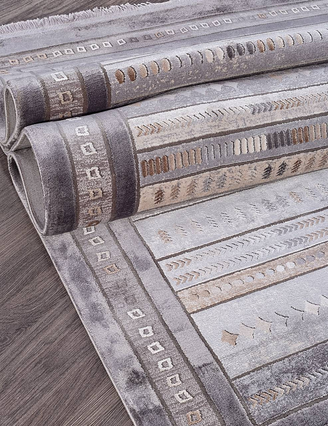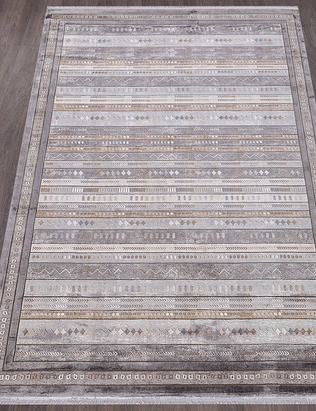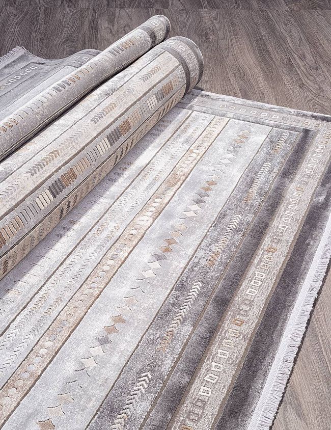 Коротко: «Ковер CORNELIA 17942A A. GRI / K. GRI» (CORNELIA, DURKAR, Турция) — ковер для дома, гостиной. материал: акрил 60% + Вискоза 40%, стиль: в современном стиле, цвет: серый, бежевый, коричневый, ворс: 8 мм, плотность: 2000000 точек/м², основа: хлопок, подходит для современного интерьера, страна производства: Турция.