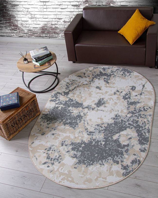 Коротко: «Ковер CUBA F269 BLUE Овал» (CUBA, MERINOS) — ковер для дома, гостиной. материал: полипропилен + Полиэстер, стиль: в современном стиле, цвет: серый, бежевый, ворс: 7 мм, плотность: 140800 точек/м², основа: джут, подходит для современного интерьера, страна производства: Россия.