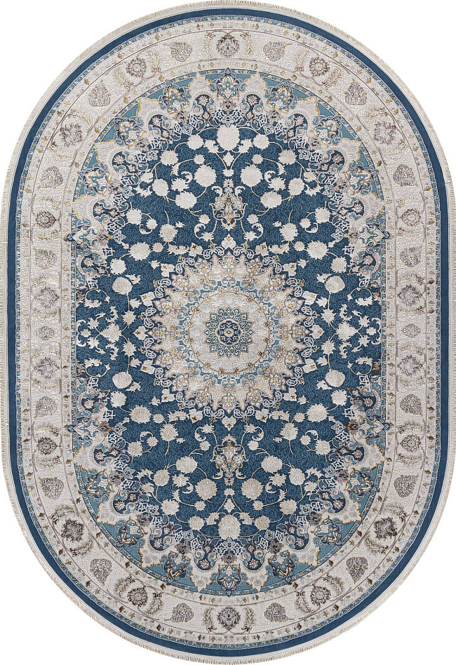 Коротко: «Ковер DELINA A050B D. BLUE / CREAM Овал» (DELINA, ARDA, Турция) — ковер для дома, гостиной. материал: полиэстер, стиль: в классическом стиле, цвет: кремовый, синий, ворс: 8 мм, плотность: 720000 точек/м², основа: хлопок, ориентирован на классическую подачу, страна производства: Турция.