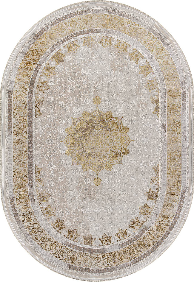 Коротко: «Ковер DELINA A064A CREAM / GOLD FDY Овал» (DELINA, ARDA, Турция) — ковер для дома, гостиной. материал: полиэстер, стиль: в классическом стиле, цвет: кремовый, золотой, ворс: 8 мм, плотность: 720000 точек/м², основа: хлопок, ориентирован на классическую подачу, страна производства: Турция.