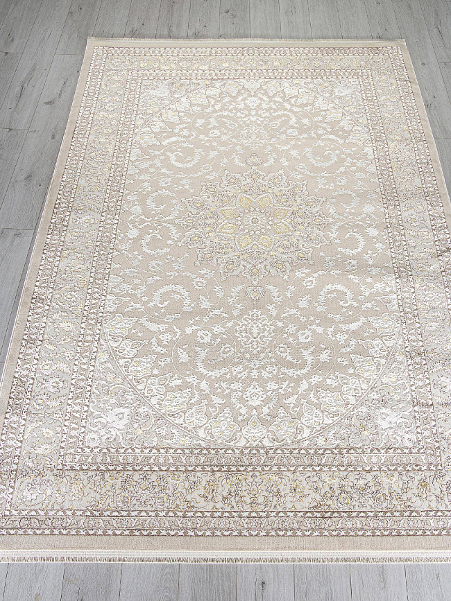 Коротко: «Ковер DELINA M108A BEIGE / CREAM» (DELINA, ARDA, Турция) — ковер для дома, гостиной. материал: полиэстер, стиль: в классическом стиле, цвет: кремовый, бежевый, ворс: 8 мм, плотность: 720000 точек/м², основа: хлопок, ориентирован на классическую подачу, страна производства: Турция.