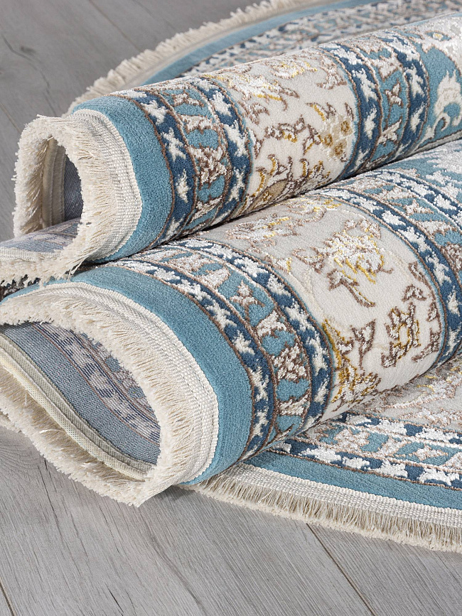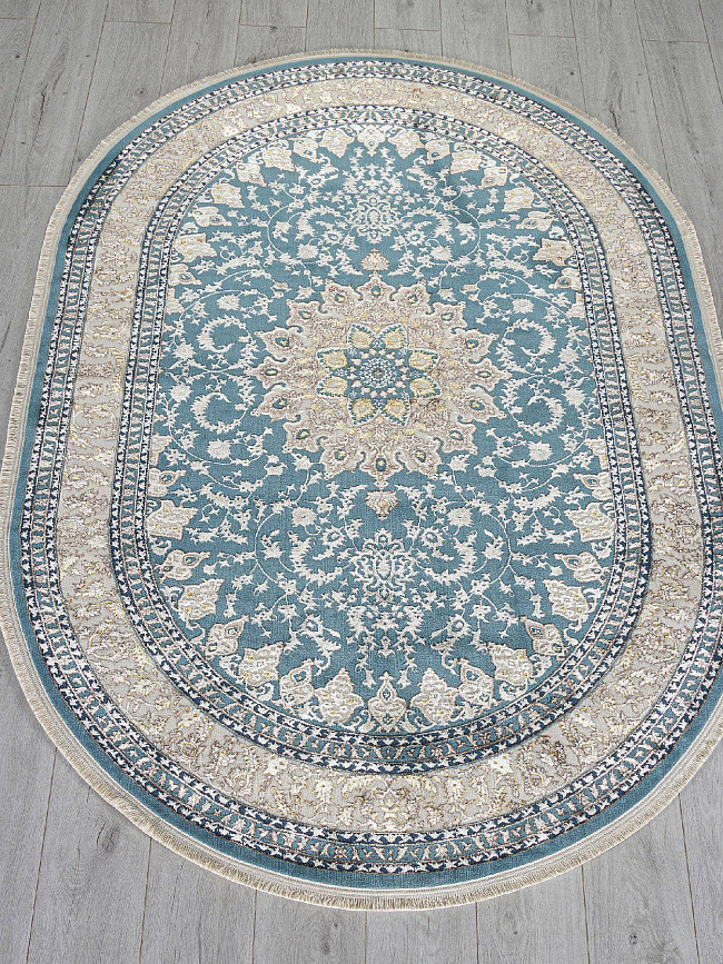 Коротко: «Ковер DELINA M108A BLUE / CREAM Овал» (DELINA, ARDA, Турция) — ковер для дома, гостиной. материал: полиэстер, стиль: в классическом стиле, цвет: кремовый, синий, ворс: 8 мм, плотность: 720000 точек/м², основа: хлопок, ориентирован на классическую подачу, страна производства: Турция.