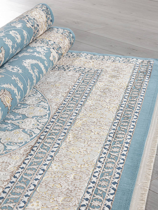 Коротко: «Ковер DELINA M108A BLUE / CREAM» (DELINA, ARDA, Турция) — ковер для дома, гостиной. материал: полиэстер, стиль: в классическом стиле, цвет: кремовый, синий, ворс: 8 мм, плотность: 720000 точек/м², основа: хлопок, ориентирован на классическую подачу, страна производства: Турция.