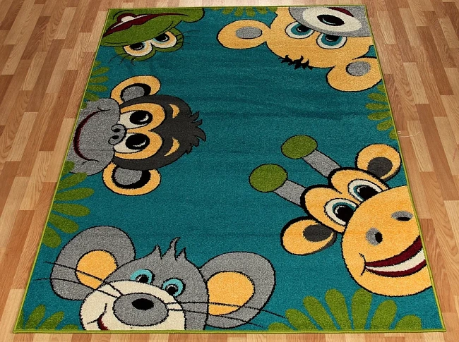 Коротко: «Ковер детский FUNKY TOP Tig emerald» (FUNKY-TOP, Agnella) — ковер для детской, дома. материал: полипропилен, стиль: детский, цвет: синий, ворс: 8 мм, плотность: 256000 точек/м², основа: джутовая, подходит для детского интерьера, страна производства: Польша.